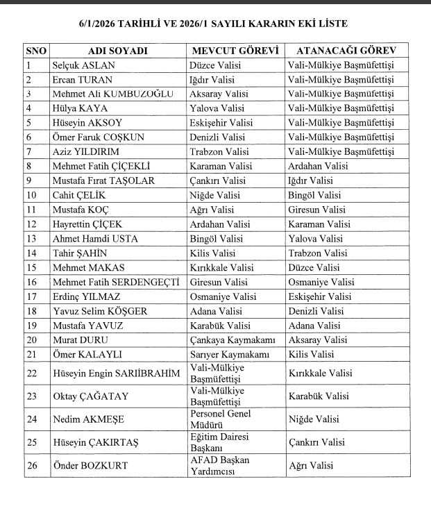 Günlerdir konuşulan Valiler Kararnamesi, Resmi Gazete’de yayımlandı ve kararnameye göre Vali Gökmen Çiçek, Kayseri’de görevine devam ediyor.