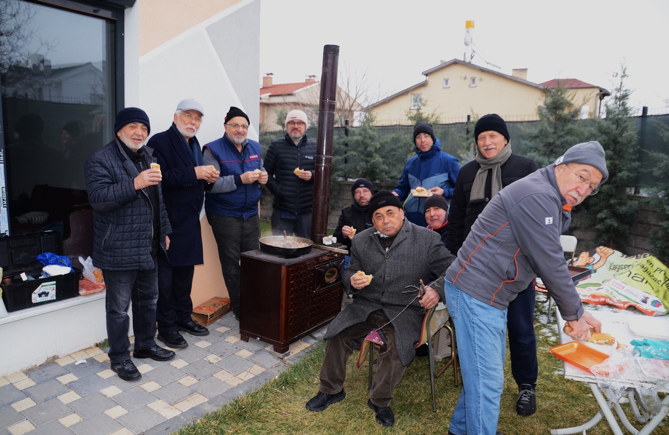 Hafta sonu sabahın erken saatlerinde başlayan ve yaklaşık 1,5-2 saat süren yürüyüşün ardından düzenlenen yemek ve çay molasında Hamdi Sarp, sürpriz bir karşılaşmanın ardından Erciyes Kardelen Yürüyüş Ekibine misafir oldu.