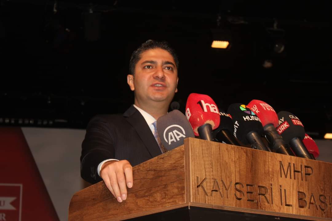 “Hain katiller sürüsü olan PKK terör örgütüne mensup iki terörist İçişleri Bakanlığımızı hedef alan hain bir terör saldırısı gerçekleştirdi. Bu terör saldırısından hemen önce de Kayseri, Develi’de veteriner olan bir vatandaşımızı şehit ettiler. Allah’a hamd olsun. Birileri bu terör nedeniyle Türkiye’yi bu girmiş olduğu kararlı istikametten döndüreceğini zannetti. Ancak başarılı olamadı. Bu tarihten çok kısa bir süre sonra da şanlı ordumuz Suriye’de bulunan PKK, PYD terör örgütüne ait alanları artık meşru hedef saydığını ve bu örgütle beraber hareket eden üçüncü taraf ülkelerinde biran evvel bu terör örgütünün kontrol ettiği alanlardan uzaklaştırılması çağrısında bulundu. Bu çağrıyı yaptıktan hemen sonra bölgede gerçekleştirilen operasyonlarımızda Amerika Birleşik Devletleri’ne ait NATO kapsamında güya müttefik olduğumuz bir ülkeye ait savaş uçakları teröristlere karşı girişilen mücadelede ülkemize ait bir SİHA’yı düşürdü. Bu durumun kabul edilir bir yanı yoktur. Türkiye Cumhuriyeti’nin orada vermiş olduğu mücadele meşru bir mücadeledir ve terör örgütlerine karşı hem Türkiye’yi hem bölgeyi hedef alan, özünde de bütün insanlığın düşmanı olan ve bütün dünyanın da terörist olarak kabul ettiği PKK terör örgütüne karşı verilen bir mücadeledir. PKK ile mücadele döneminde Türkiye’yle müttefik olduğunu iddia eden Amerika Birleşik Devletleri’nin ve askerlerinin bölgede ne işi vardı? Bu soruyu sormak da bizim en temel, en tabii hakkımızdır. Ve gelinen aşamada Amerika Birleşik Devletleri’nin Suriye’deki varlığının Türkiye için, Türkiye’nin milli güvenliği için bekamız için açık bir milli tehdit olduğu gerçeğini haykırmaktan geri durmayacağız. Varsın, birileri bu hain teröristlerle kol kola gezsinler. Türk Milleti her yerde mazlumun yanında olmaya, vatandaşının hakkını hukukunu korumaya kendi milli güvenliğini tesis etmeye yönelik kararlı duruşunu sergilemeye de devam edecektir. Ve böylelikle Kayseri’den Erciyes’in yiğit evlatlarının sesi olarak bir kez daha haykırmak istiyorum.
